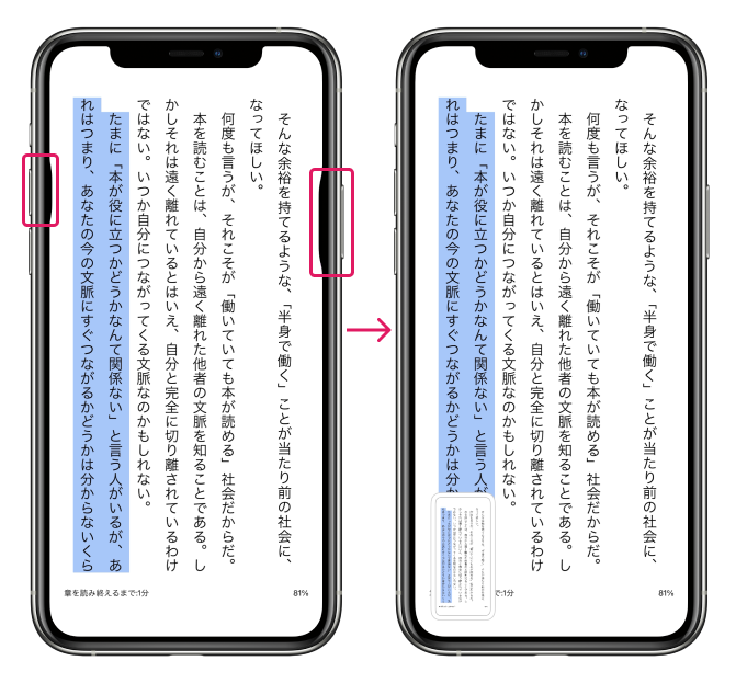 Kindleでハイライトした後、左右のボタンを同時押ししてスクショを撮ります。